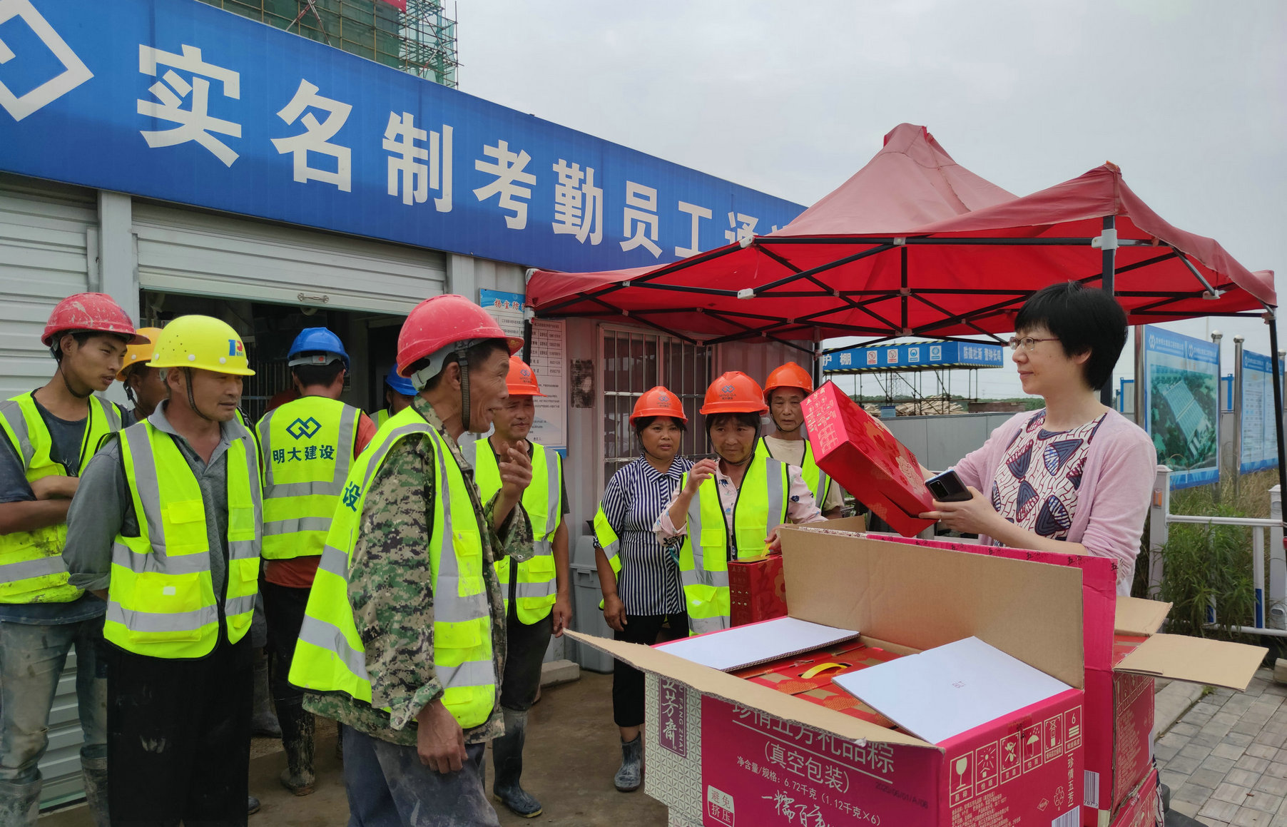 6月24日下午,端午節(jié)來臨之際,常州市經開區(qū)工會金主席一行專程前往綠聯(lián)項目工地開展“情暖一線職工,傳承端午文化”節(jié)日慰問活動,親自為一線工人發(fā)放端午禮品,祝他們節(jié)日快樂,身體安康,并把經開區(qū)領導對綠聯(lián)項目的關心傳達到工地的每一位建設者。永葆環(huán)保工會主席段昌海,項目經理張珂參與此次活動,向領導匯報綠聯(lián)項目的建設進展情況。