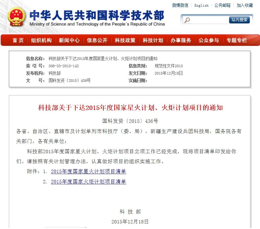 12月18日,根據(jù)國家科技部“關(guān)于下達2015年度國家星火計劃、火炬計劃項目的通知”。本公司《22萬噸廢棄物資源化再利用產(chǎn)業(yè)化示范》項目,獲得國家科技部火炬計劃項目(產(chǎn)業(yè)化示范項目)立項,項目編號為2015GH061389。
