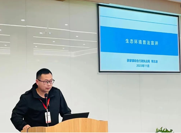 薛家鎮(zhèn)綜合行政執(zhí)法局惲志波重點講解了生態(tài)環(huán)境法律法規(guī)、常見環(huán)境違法行為及后果,并結(jié)合典型案例闡述了環(huán)境管理要點。