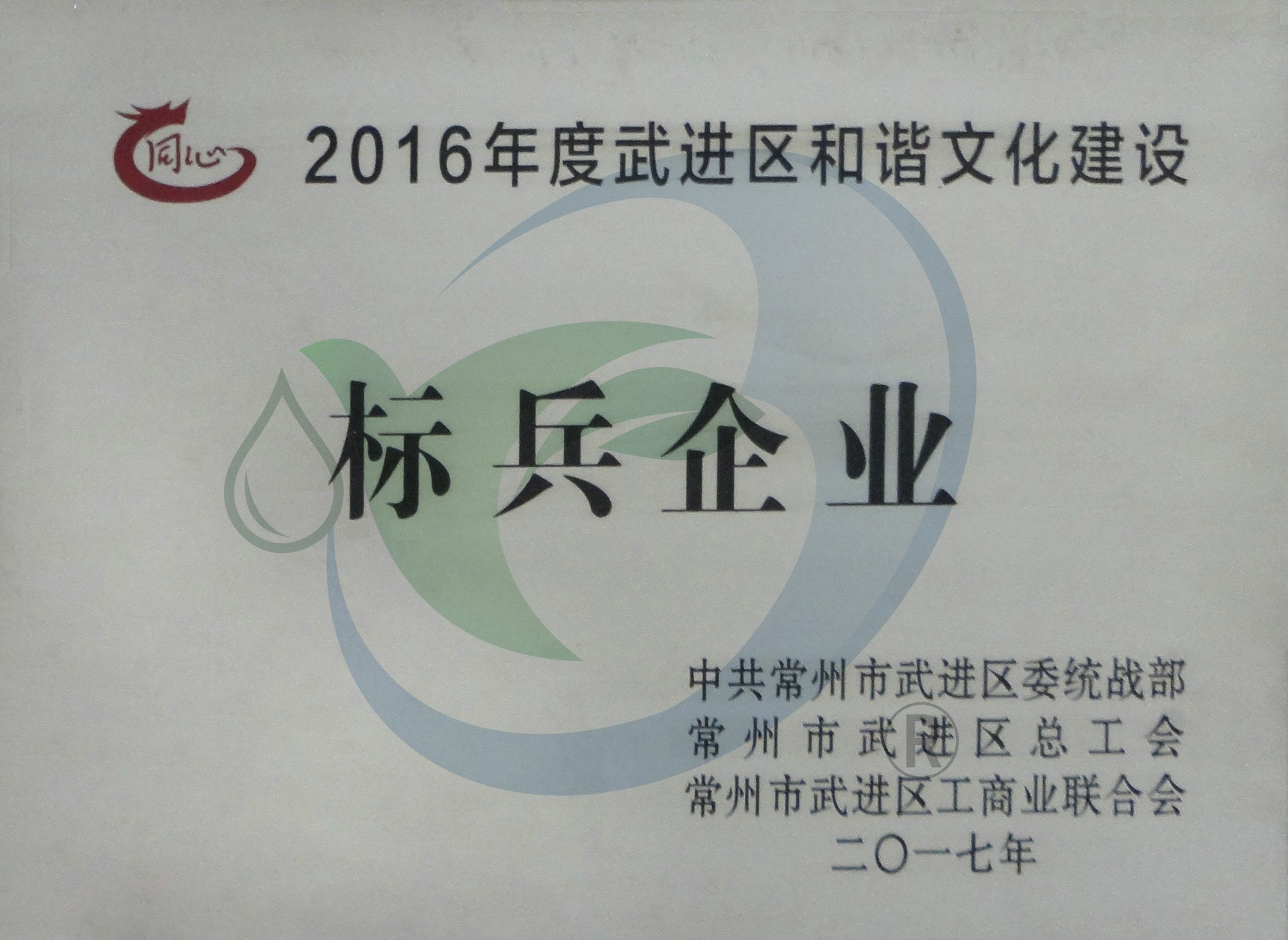 2017年9月11日下午兩點,在江蘇洛凱機電大禮堂召開全區(qū)非公有制經(jīng)濟人士理想信念報告會暨企業(yè)和諧文化建設提升行動推進會,表彰一批2016年度和諧文化建設星級、標兵企業(yè),武進區(qū)相關領導參加會議。會議正式授予永葆環(huán)保“2016年武進區(qū)和諧文化建設標兵企業(yè)”的榮譽稱號。